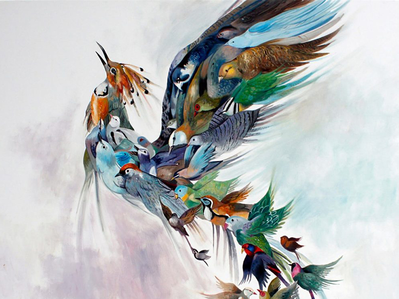 Öyle ki, bütün kuşlar ona inanır, başları sıkıştıkça Simurg’un kendilerine yardım edeceğini, onları hep zor durumlardan kurtaracağını düşünürler.