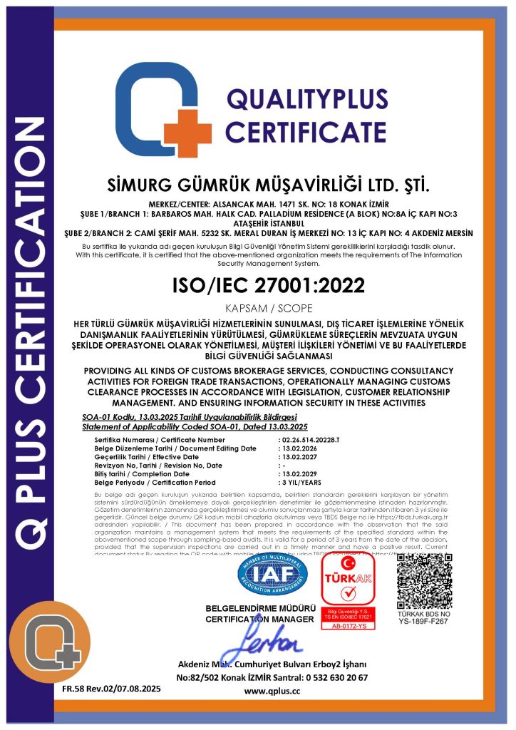 Bu entegre yönetim yapısı sayesinde; operasyonel verimliliği artıran, bilgi güvenliğini güvence altına alan ve müşteri memnuniyetini sürdürülebilir kılan kurumsal bir yapı ile faaliyetlerimizi yürütmekteyiz. Standartlara uyum, şirketimiz için yalnızca bir belgelendirme değil, iş yapış kültürümüzün ayrılmaz bir parçasıdır.